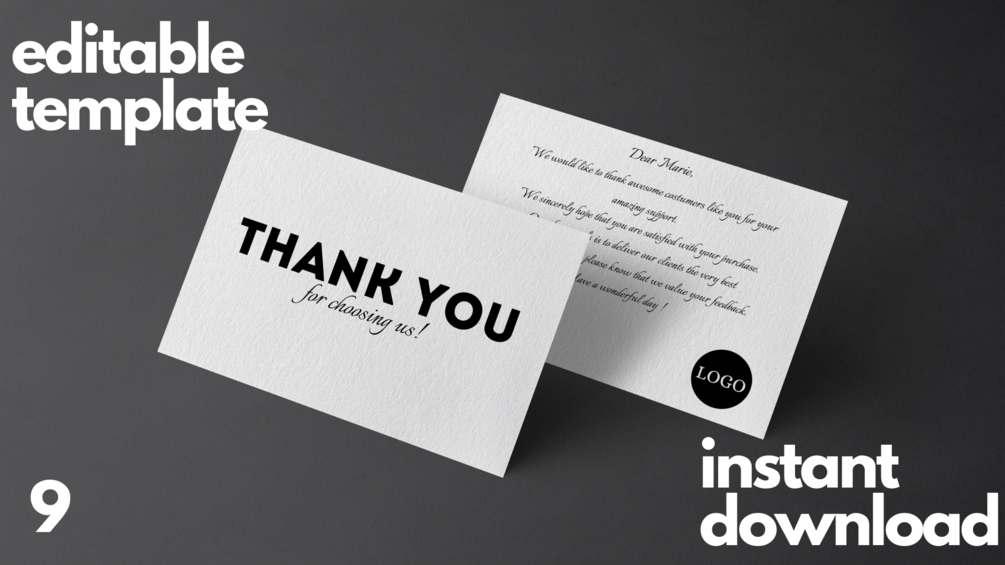 3 in 1 Thank you card template/ postcard template bundle simple and minimalist, editable for small business
